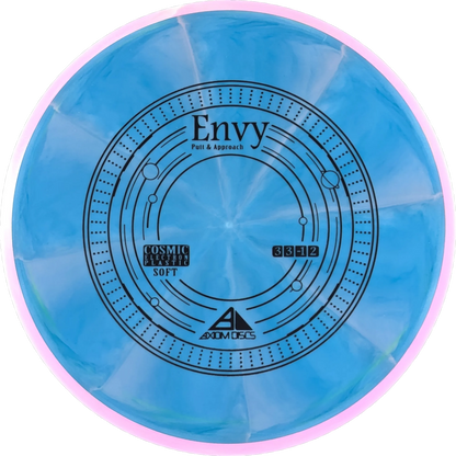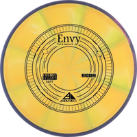 Envy from Axiom is a putter that became world famous in 2021 when it helped James Conrad win the world championship in disc golf. James Conrad threw his Envy into the basket from 80 meters and thus secured a place in the play-off, which he subsequently won. An Envy is a neutral to slightly stable putter that can be used by everyone.