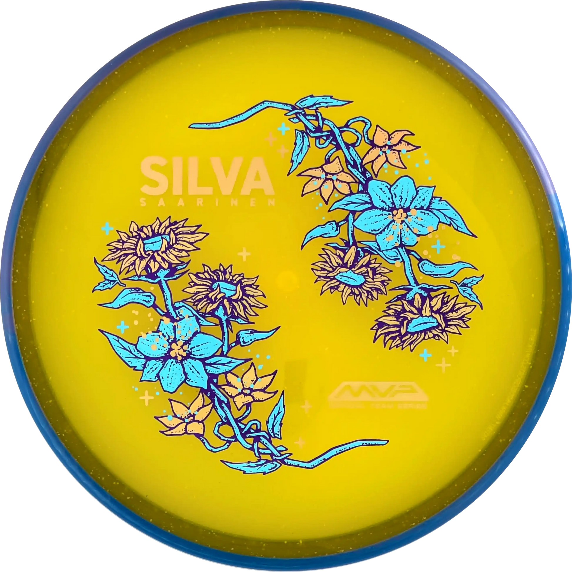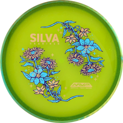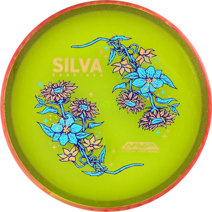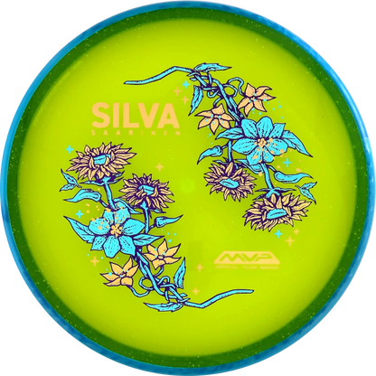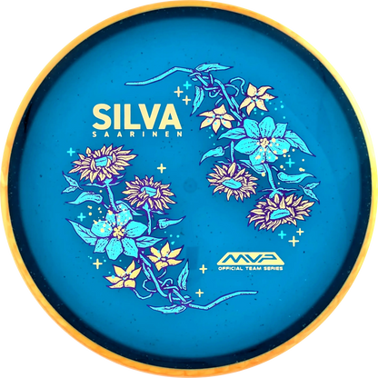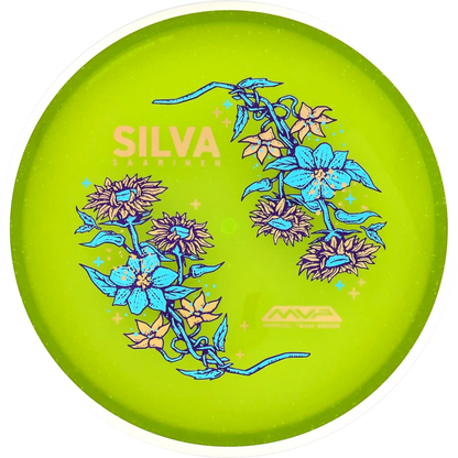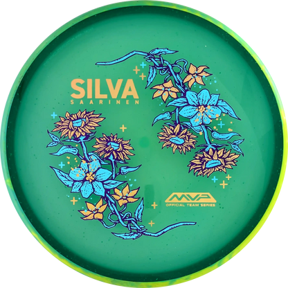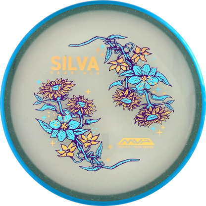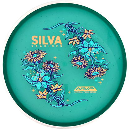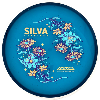 As only the second disc ever, the popular Proxy is released here with the incredibly beautiful Particle Glow effect in the plastic. Particle Glow consists of a lot of small pieces of self-luminescent plastic that are distributed in the transparent Soft Proton plastic from Axiom and MVP. This combination gives a glow effect in the disc that is reminiscent of a starry sky. The disc is released as a signature edition for Silva Saarinen on Team MVP.