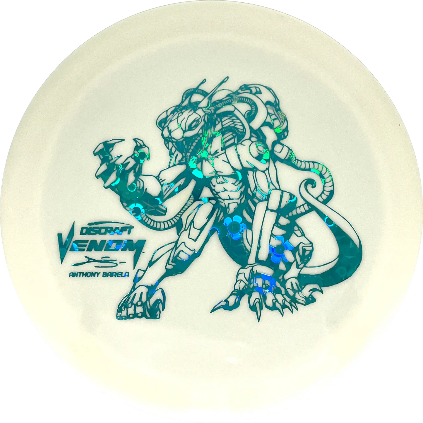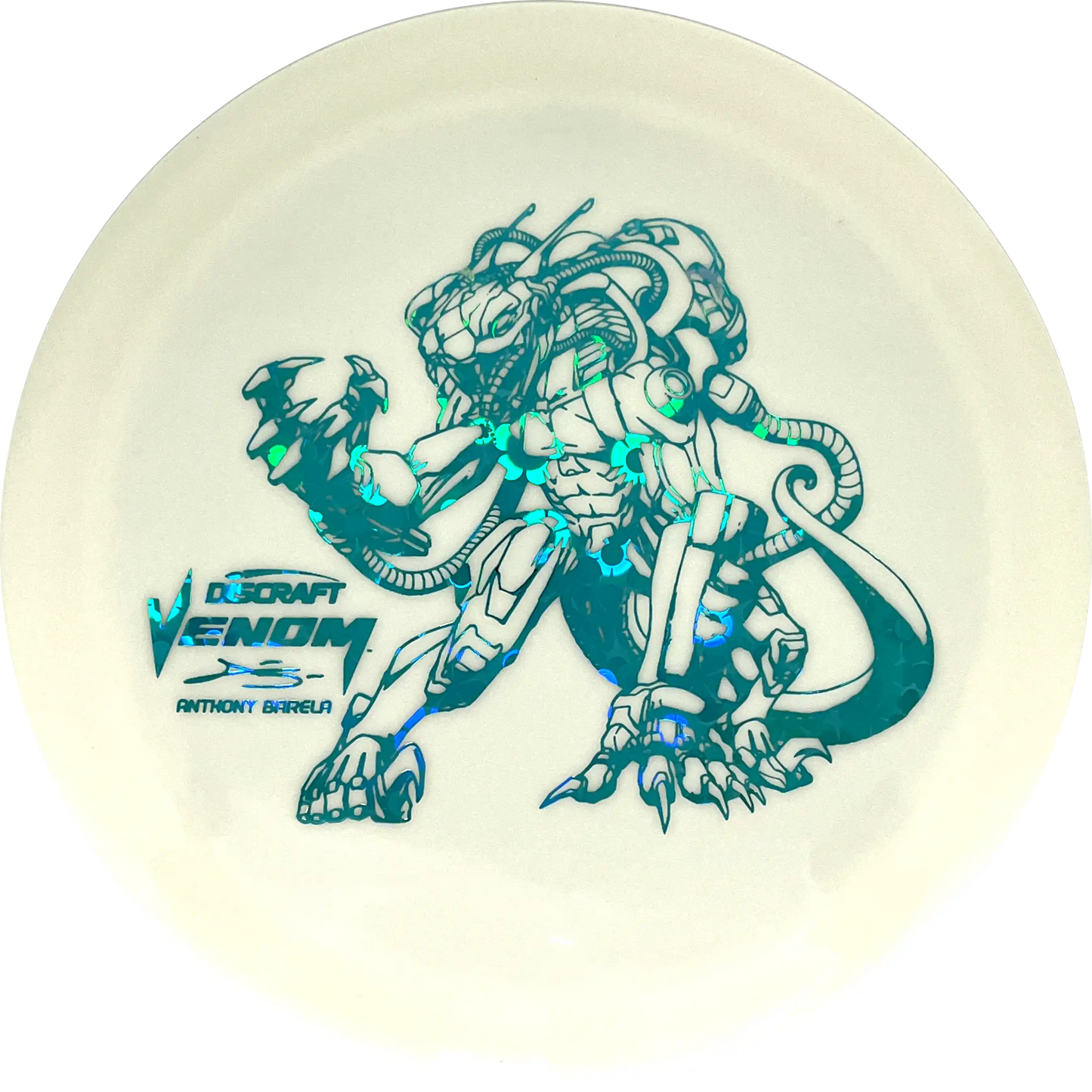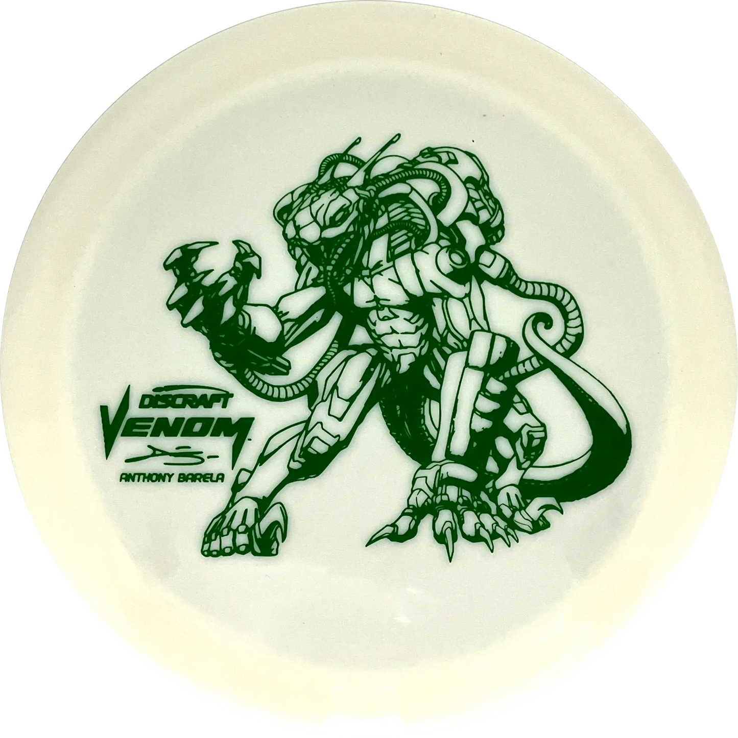 Young Anthony Barela is one of the most successful players in 2024 and to celebrate that he has already won several tournaments on this year's tour, Discraft is releasing a very special edition of the super stable distance driver Venom. Venom is one of Anthony Barela's favorite drivers and here it comes in an ESP Glo plastic with a very special signature stamp.